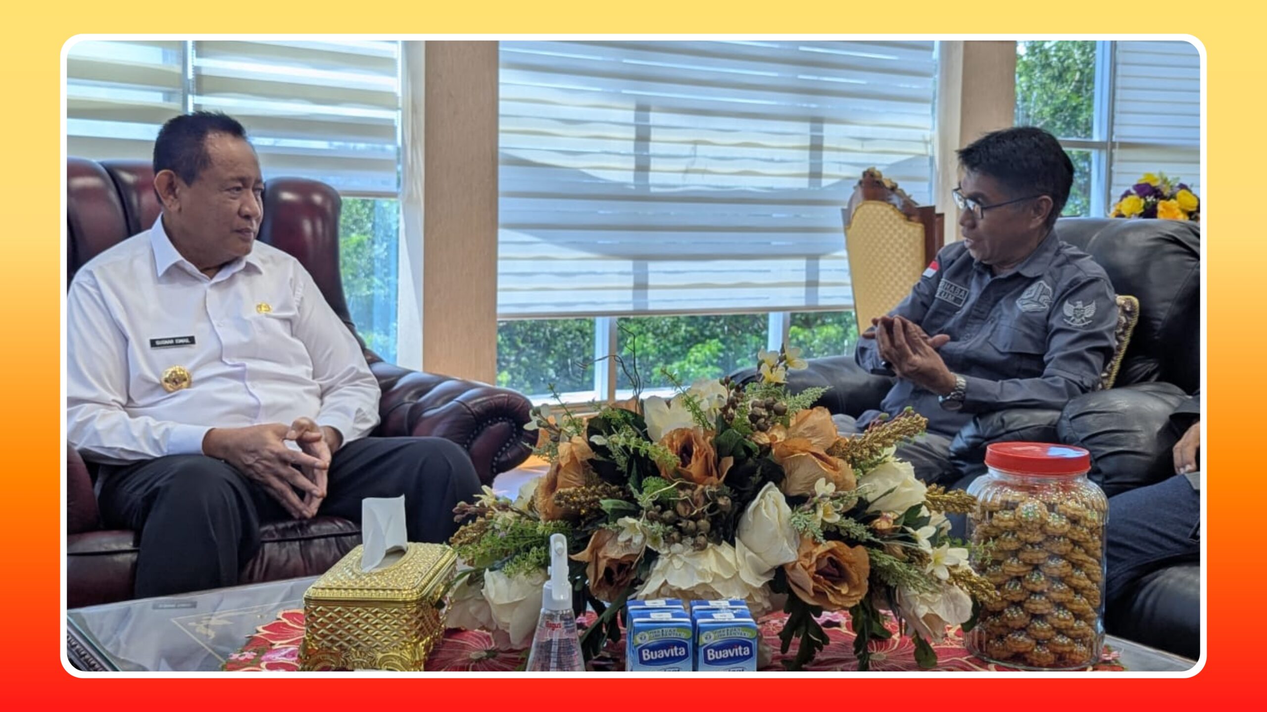 Caption: Ketum DPP PJS Mahmud Marhaba saat memberikan penjelasan rencana UKW Akbar Intim ke Gubernur Gorontalo, Gusnar Ismail, Rabu (23/07/2025) di ruang kerja Gubenur Gorontalo.