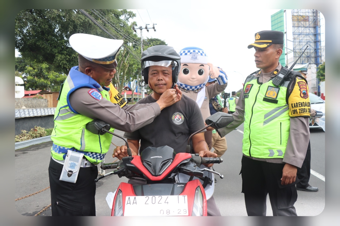 Edukasi Keselamatan dan Pembagian Helm Warnai Operasi Zebra Candi 2025 Polres Magelang Kota
