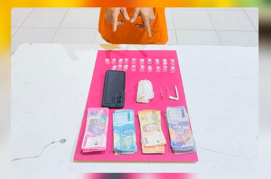 Setelah melakukan penggeledahan di bengkel las milik tersangka EY yang disaksikan oleh aparat desa setempat, petugas menemukan barang bukti berupa,19 (Sembilan Belas) bungkus paket kecil Narkotika jenis sabu sabu yang dibungkus dengan plastik bening dengan berat keseluruhan 3,05 gram, Uang Tunai Senilai Rp. 584 .000 (Lima Ratus Delapan Puluh Empat ribu rupiah), 1 (Satu) Helai Tisu Putih, 2 (Dua ) Buah Kaca Pirex, 1 (Satu) unit hp merk Oppo A 18 warna hitam.
