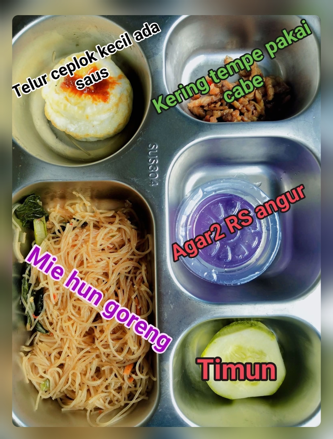 “Yang diambil hanya telur, sambal merah, oseng tempe, dan timun. Itu masih aman,” tambahnya.