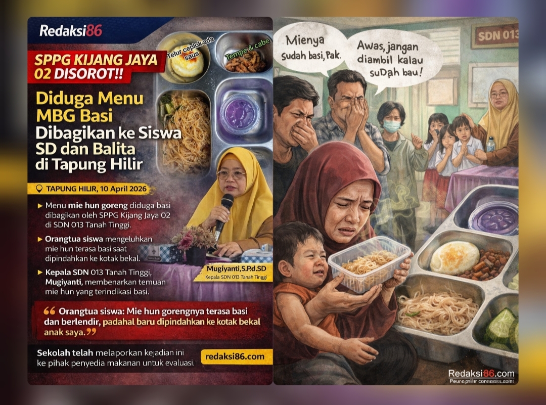 TAPUNG HILIR (KAMPAR), Redaksi86.com – Belum tuntas persoalan menu basi yang sebelumnya terjadi di SPPG Lipat Kain, Kecamatan Kampar Kiri, kini dugaan serupa kembali mencuat di Kecamatan Tapung Hilir, Kabupaten Kampar.
