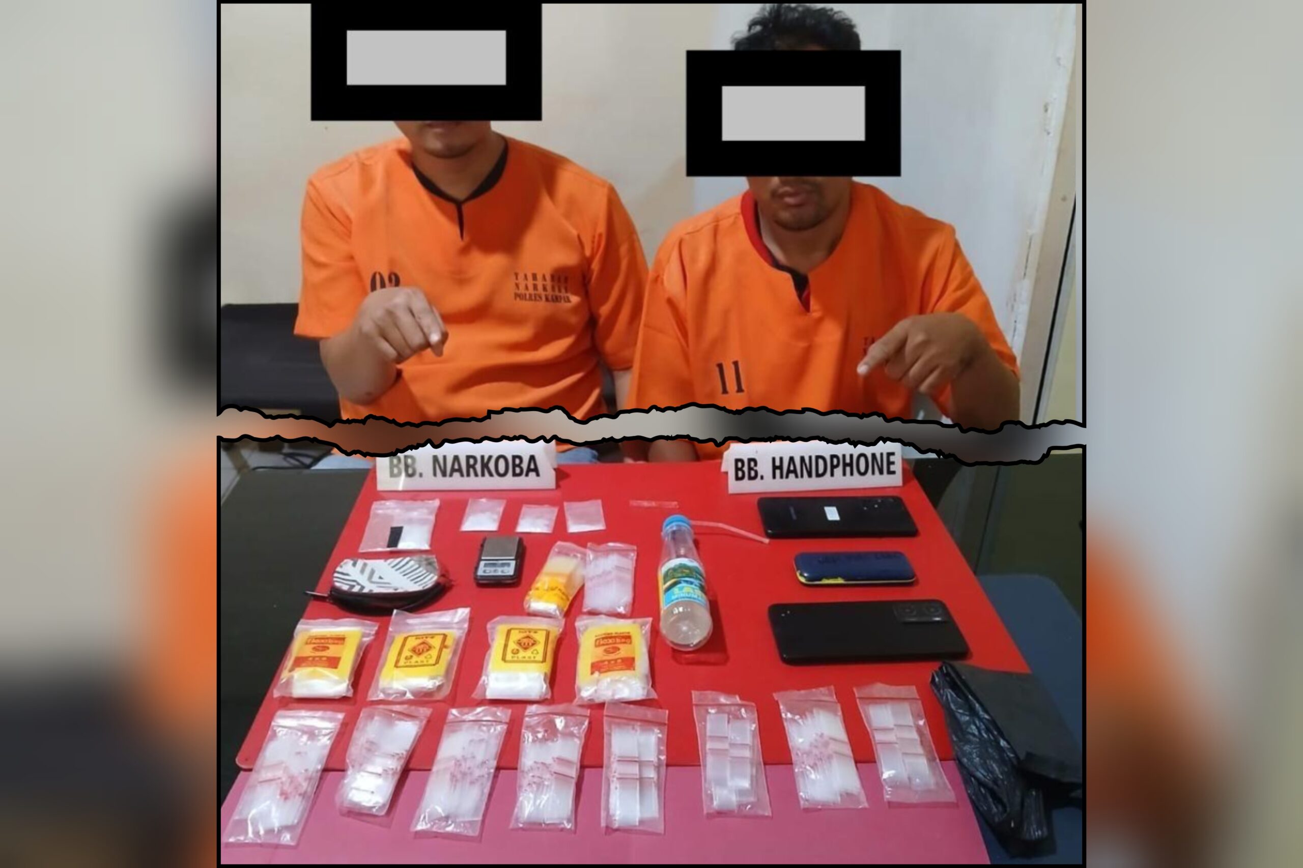 Penggerebekan bermula saat petugas menciduk Pelaku MR di sebuah kamar rumah orang tuanya yang saat itu sedang asyik mengkonsumsi narkotika jenis shabu. Dengan disaksikan oleh Ketua RT setempat, petugas melakukan penggeledahan dan menemukan sejumlah barang bukti berupa 4 (empat) paket diduga narkotika jenis shabu dengan berat kotor 9,21 gram, timbangan digital, alat hisap, dan barang bukti lainnya.