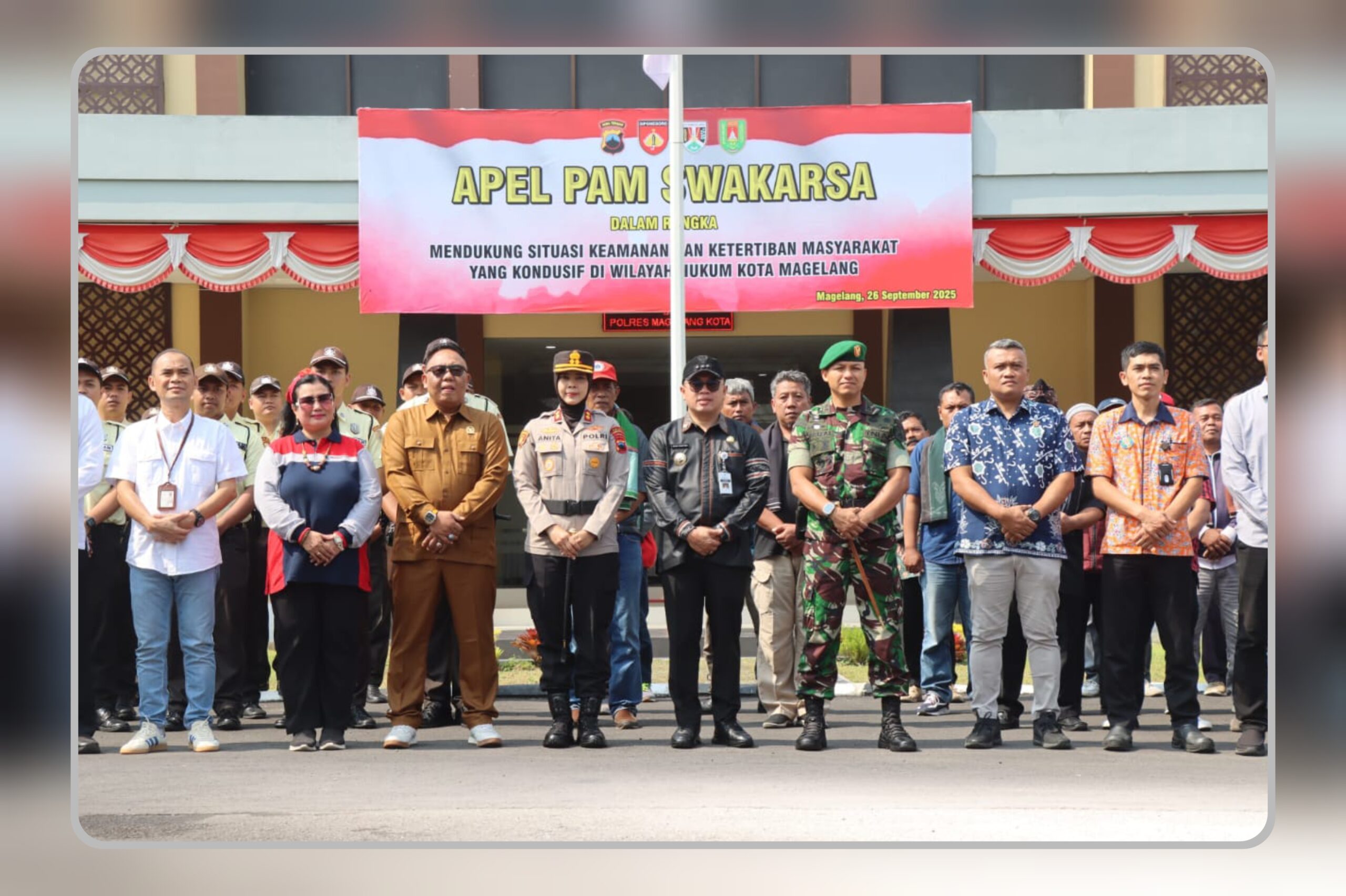 KOTA MAGELANG, Redaksi86.com – Dalam rangka mendukung situasi kamtibmas yang kondusif di Kota Magelang, Polres Magelang Kota menggelar Apel Pengamanan Swakarsa, Jum’at (26/9/2025).