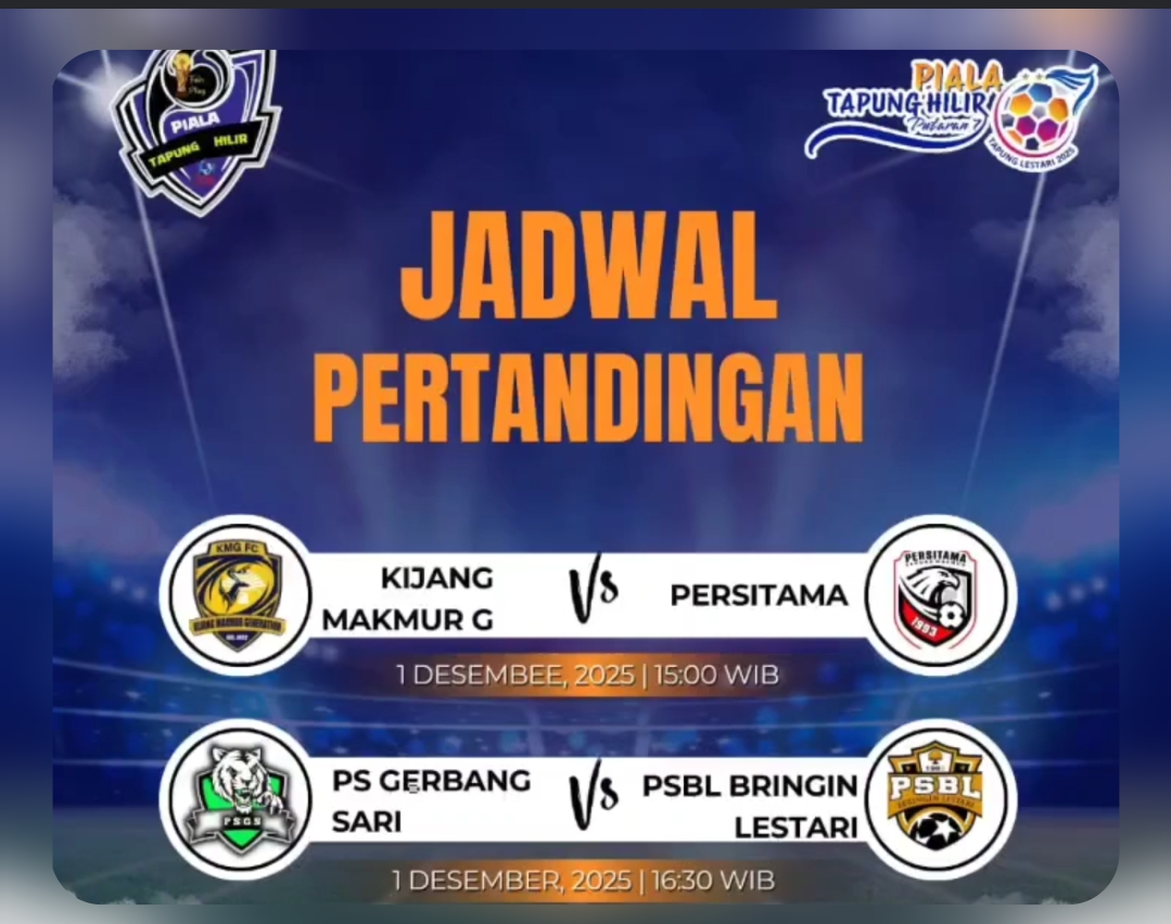 TAPUNG HILIR, Redaksi86.com — Laga perdana Turnamen Sepakbola Liga Tapung Hilir Putaran 7 Tahun 2025 resmi digelar di Lapangan Sepakbola Desa Tapung Lestari, Minggu sore (30/11/2025). Pertandingan pembuka mempertemukan Tapung City selaku tim tuan rumah melawan Sekijang FC, juara bertahan Liga Tapung Hilir Putaran 6.