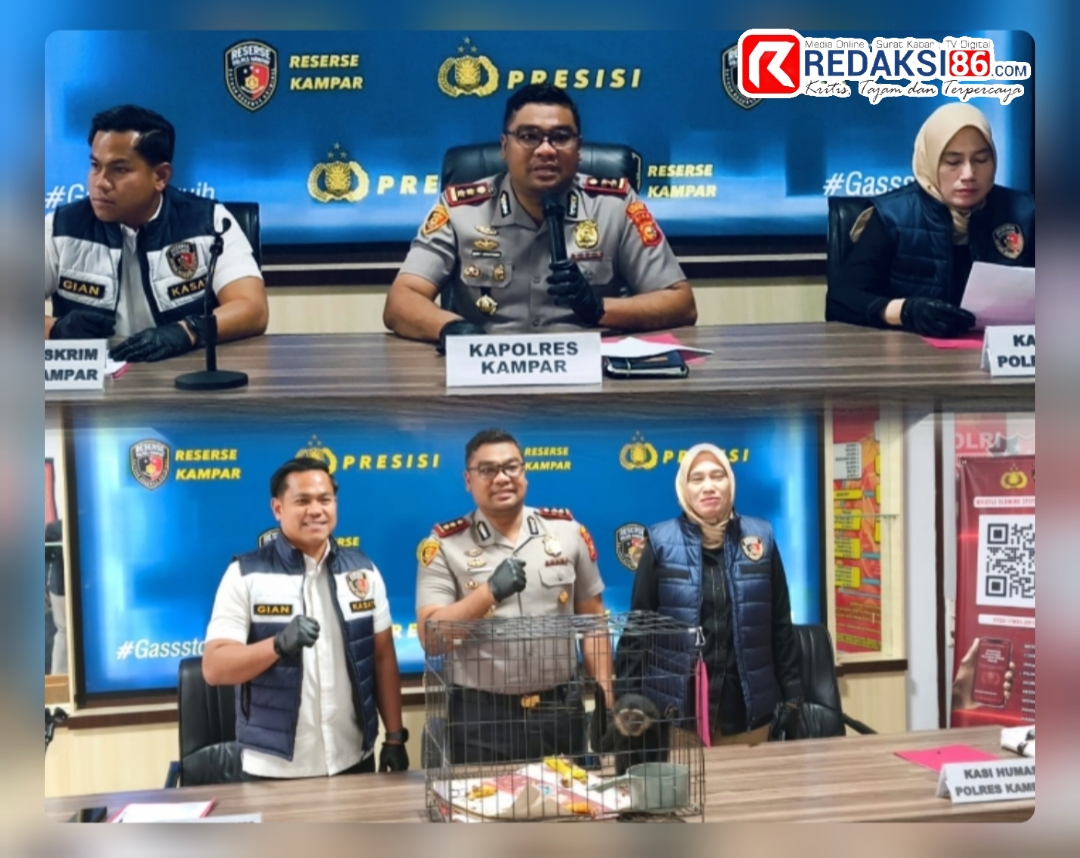 BANGKINANG KOTA, Redaksi86.com – Polres Kampar menunjukkan komitmennya dalam memberantas peredaran satwa dilindungi dengan menangkap seorang pelaku yang memperjualbelikan Owa Ungko (Hylobates Agilis), Senin (26/01/2026). Pelaku berinisial DE (30), warga Desa Salo, Kecamatan Salo, ditangkap saat hendak melakukan transaksi jual beli satwa langka tersebut.