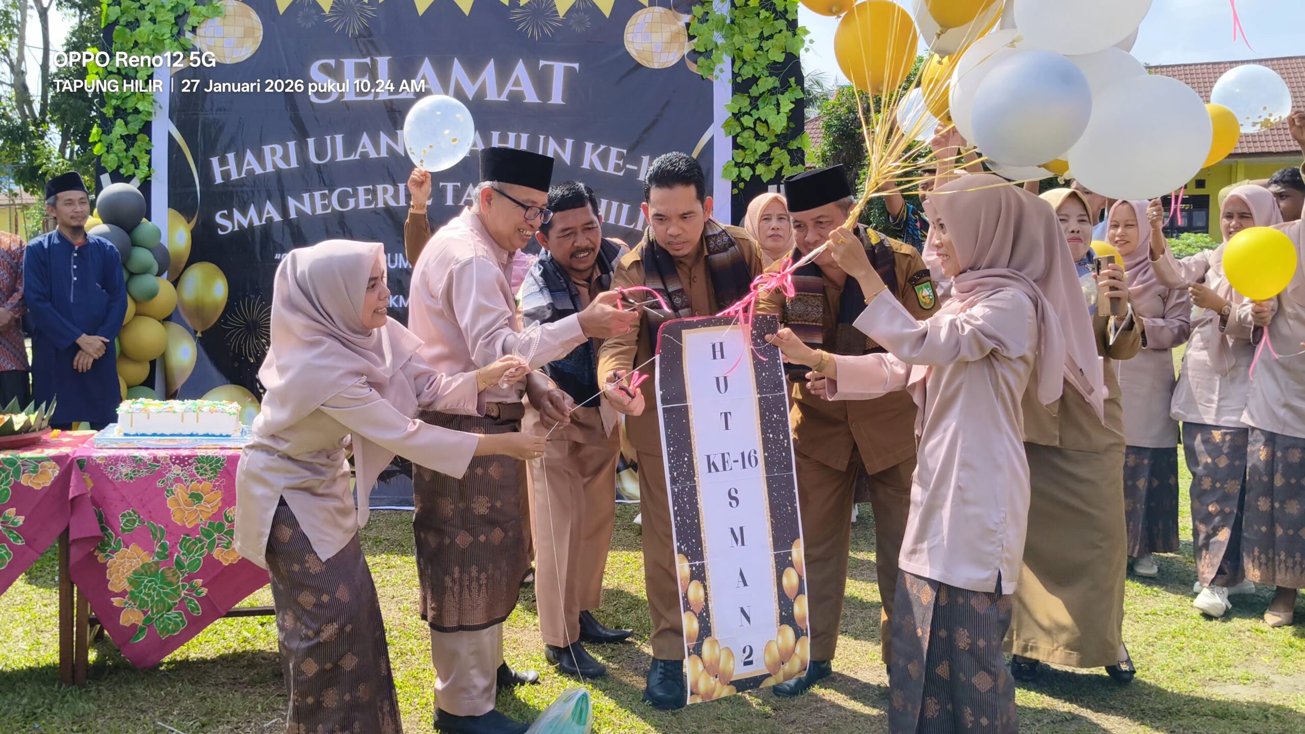 TAPUNG HILIR (KAMPAR), Redaksi86.com Puncak peringatan Hari Ulang Tahun (HUT) ke-16 SMA Negeri 2 Tapung Hilir berlangsung meriah di halaman sekolah, Selasa (27/01/2026). Mengusung tema “Sekolah Rumahku, Inspirasi Negeri”, kegiatan ini menjadi momentum refleksi sekaligus apresiasi atas perjalanan SMAN 2 Tapung Hilir selama 16 tahun dalam dunia pendidikan.