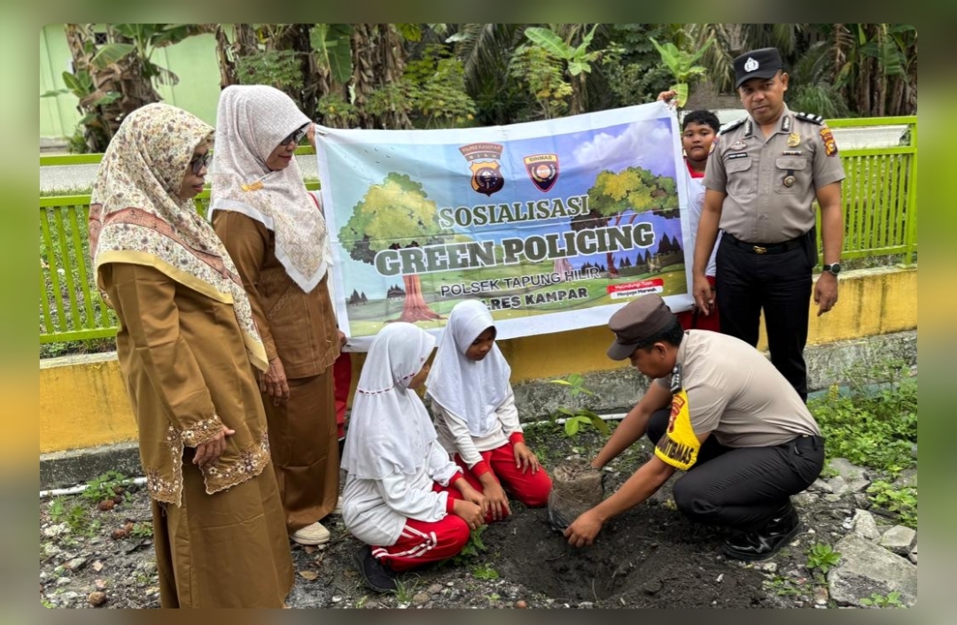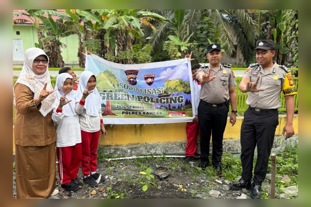 Tanamkan Cinta Lingkungan Sejak Dini, Polsek Tapung Hilir Sosialisasikan Green Policing di SDN 015 Kota Garo