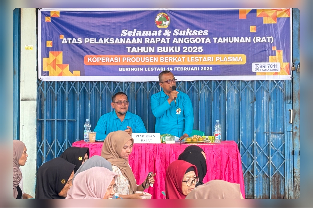 TAPUNG HILIR (KAMPAR), Redaksi86.com – Koperasi Produsen Berkat Lestari Plasma Desa Beringin Lestari, Kecamatan Tapung Hilir, menggelar Rapat Anggota Tahunan (RAT) Tahun Buku 2025, Sabtu (14/02/2026), yang berlangsung penuh semangat kebersamaan dan komitmen memperkuat tata kelola Koperasi.