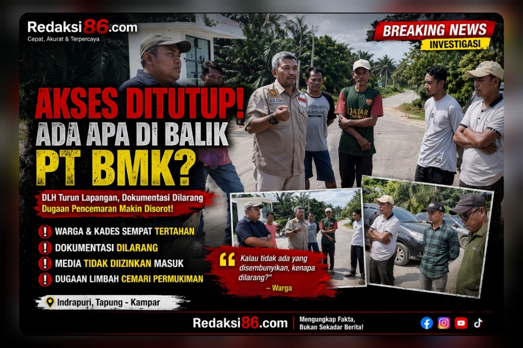 TAPUNG (KAMPAR), Redaksi86.com Dugaan pencemaran lingkungan oleh PT Bumi Mentari Karya (BMK) di Desa Indrapuri, Kecamatan Tapung, Kabupaten Kampar, kian menjadi sorotan publik. Tidak hanya terkait abu boiler yang diduga mencemari permukiman warga, namun juga sikap tertutup perusahaan yang memicu tanda tanya besar.