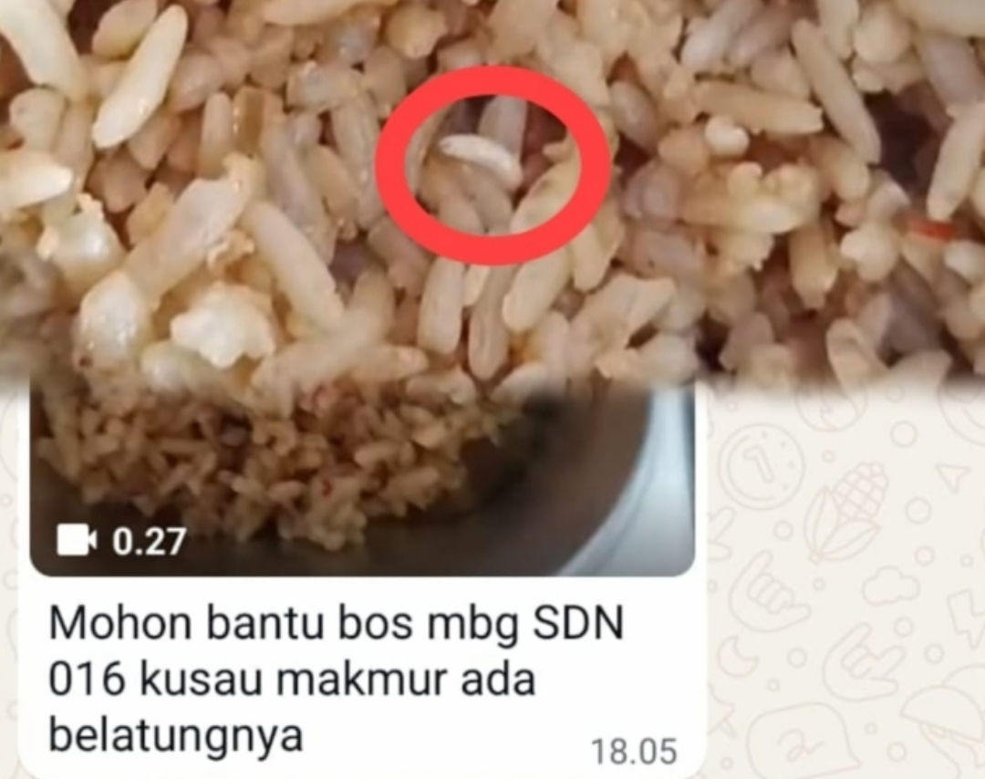 TAPUNG HULU (KAMPAR), Redaksi86.com – Program Makan Bergizi Gratis (MBG) yang seharusnya menjadi penopang kesehatan generasi bangsa, justru menyisakan potret kelam di Kabupaten Kampar, kecamatan Tapung Hulu. Sebuah insiden menjijikkan terjadi di SD Negeri 016 Desa Kusau Makmur, Sabtu (18/04/2026), dimana ditemukan belatung yang masih hidup menggeliat di dalam menu nasi goreng yang dibagikan kepada siswa.